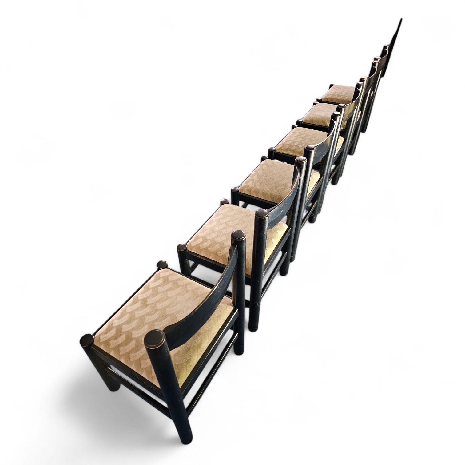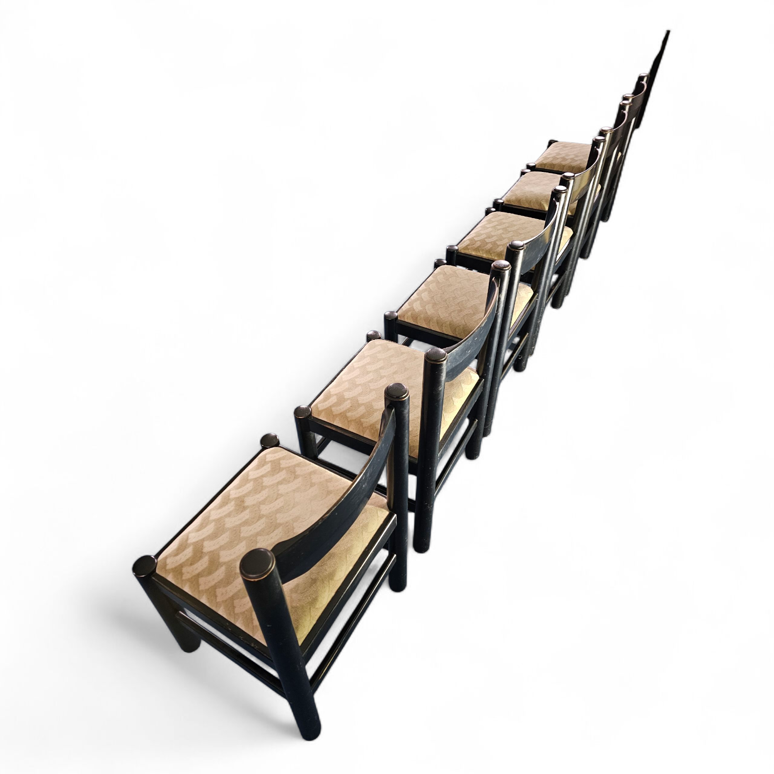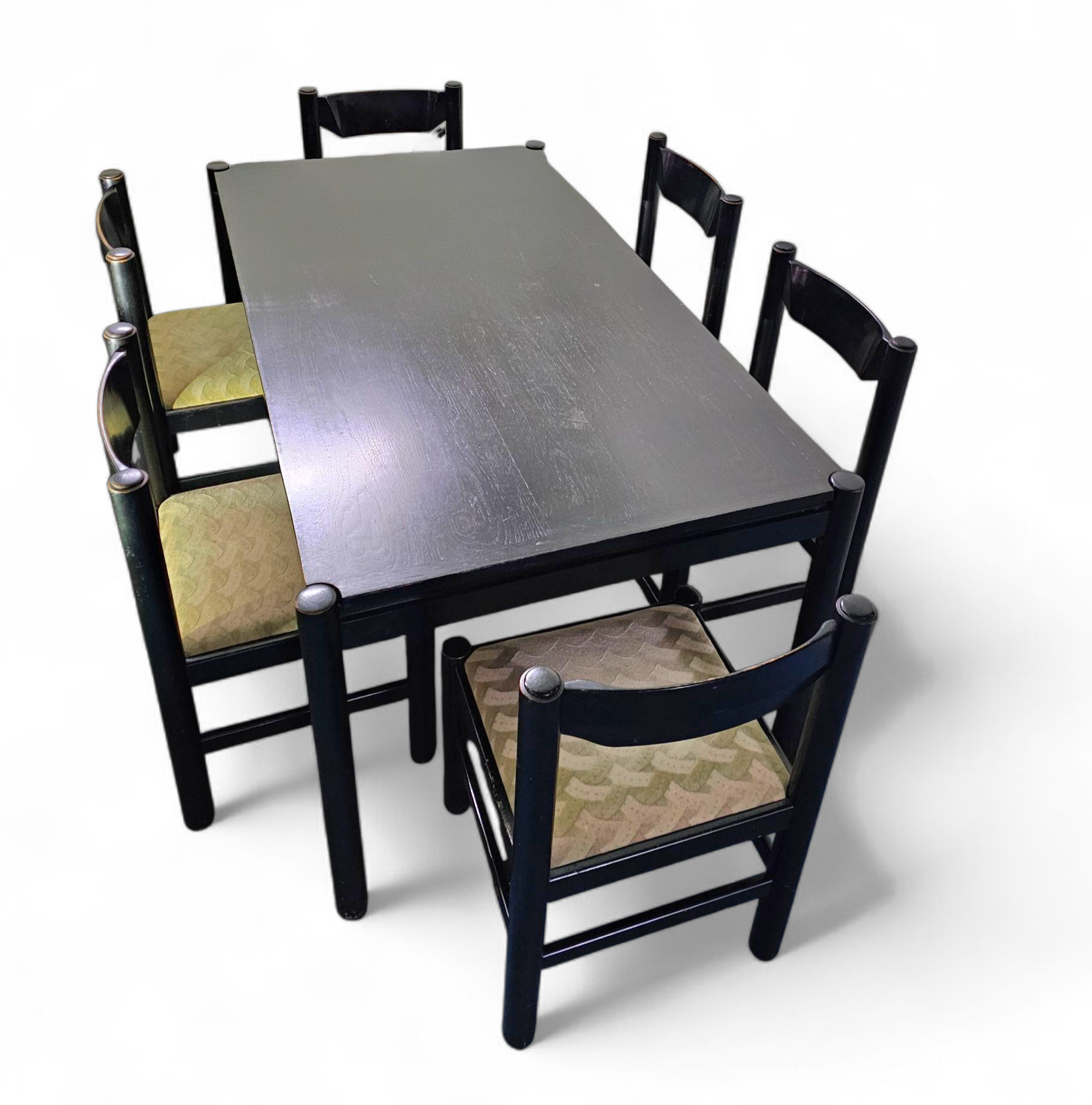 Rare dining set / Italy / 1970s/ solid black painted wood / 6 x chair / matching table