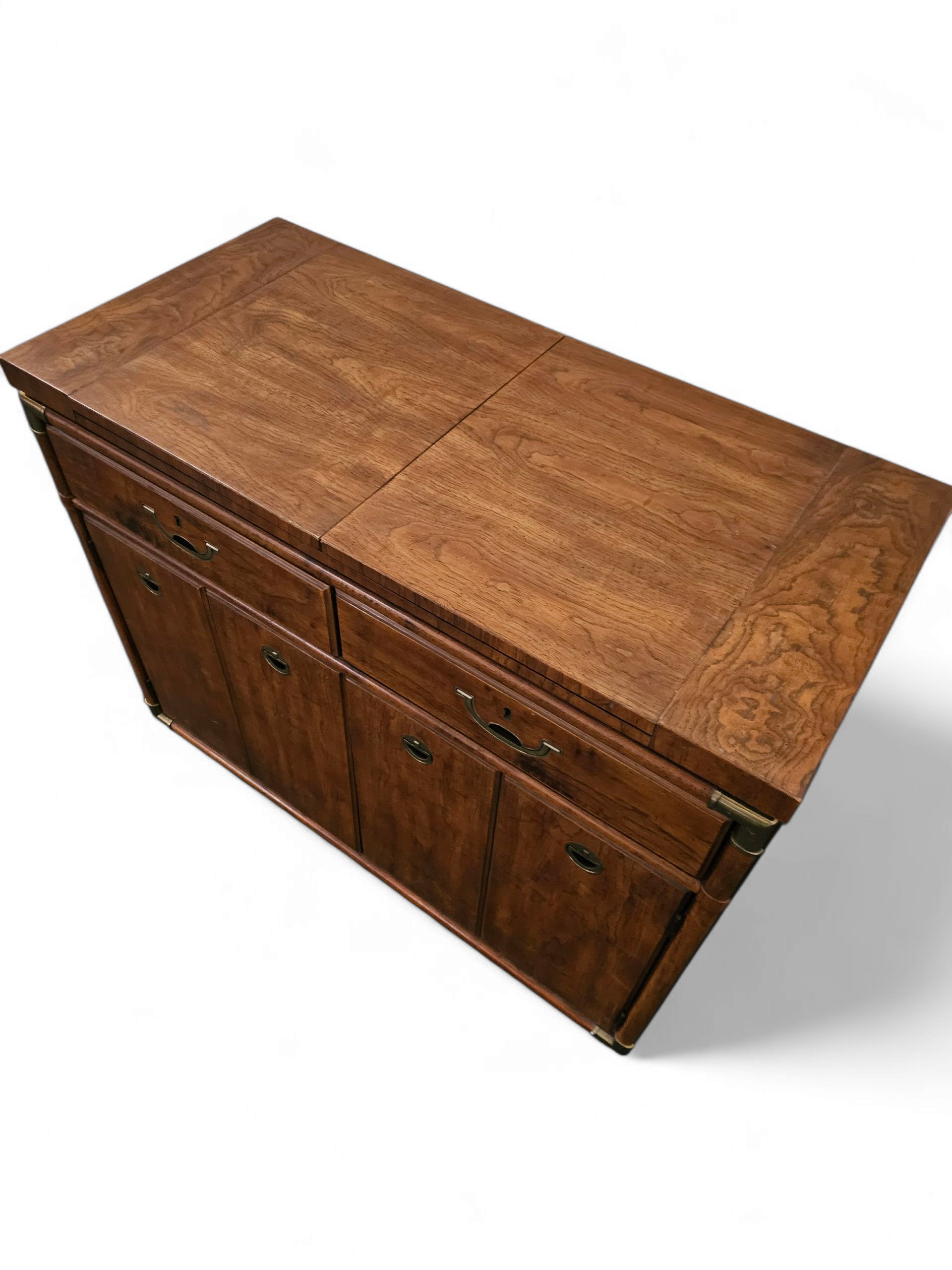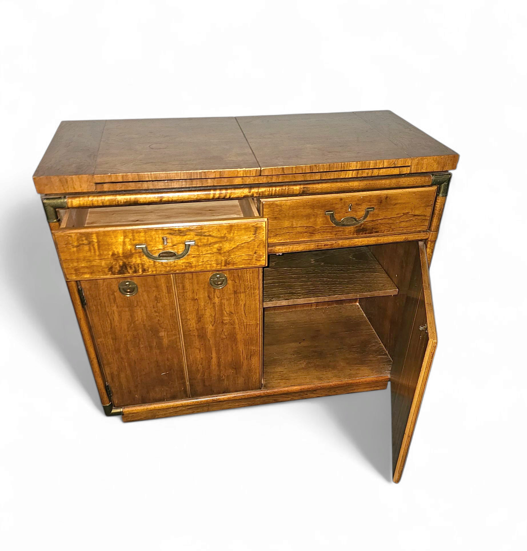 Vintage Drexel Accolade Campaign Server Dry Bar on Casters / Flip Top 1980s