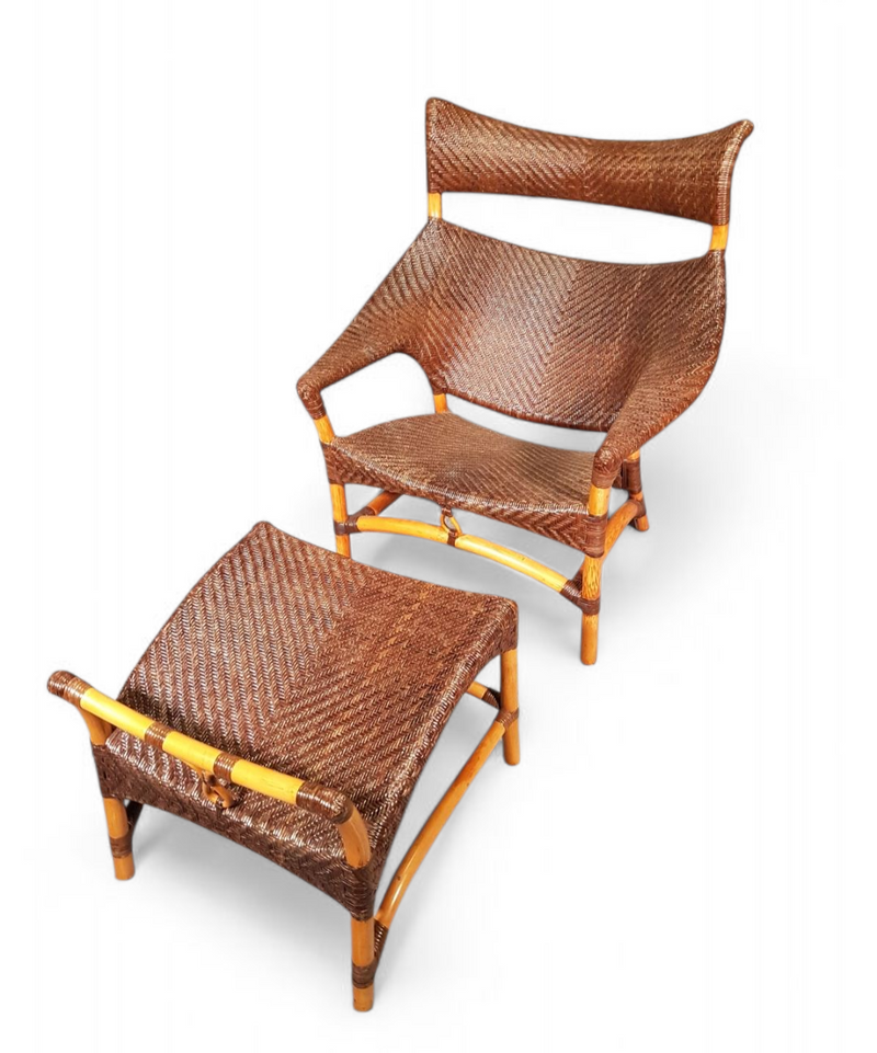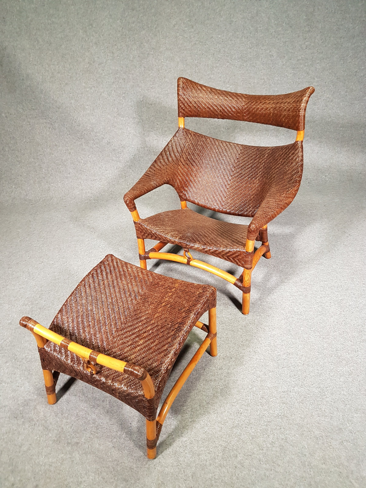 Lounge chair and footstool designed by Yuzuru Yamakawa rattan and bamboo