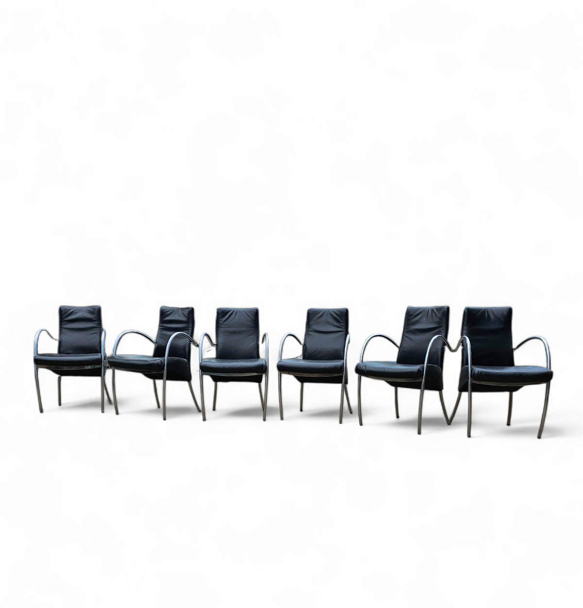 6 x rare leather dining chair by Hennie de Jong / 1990s