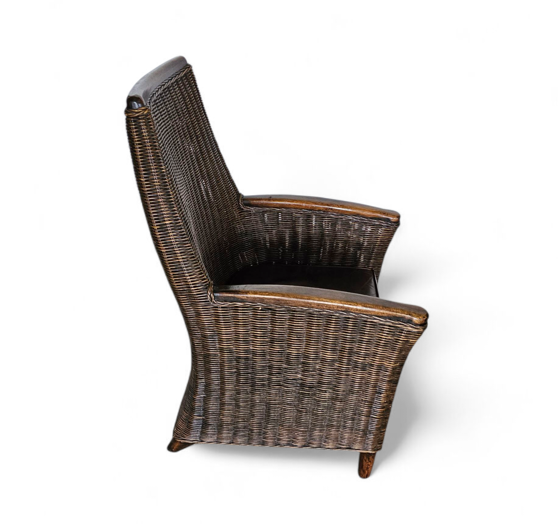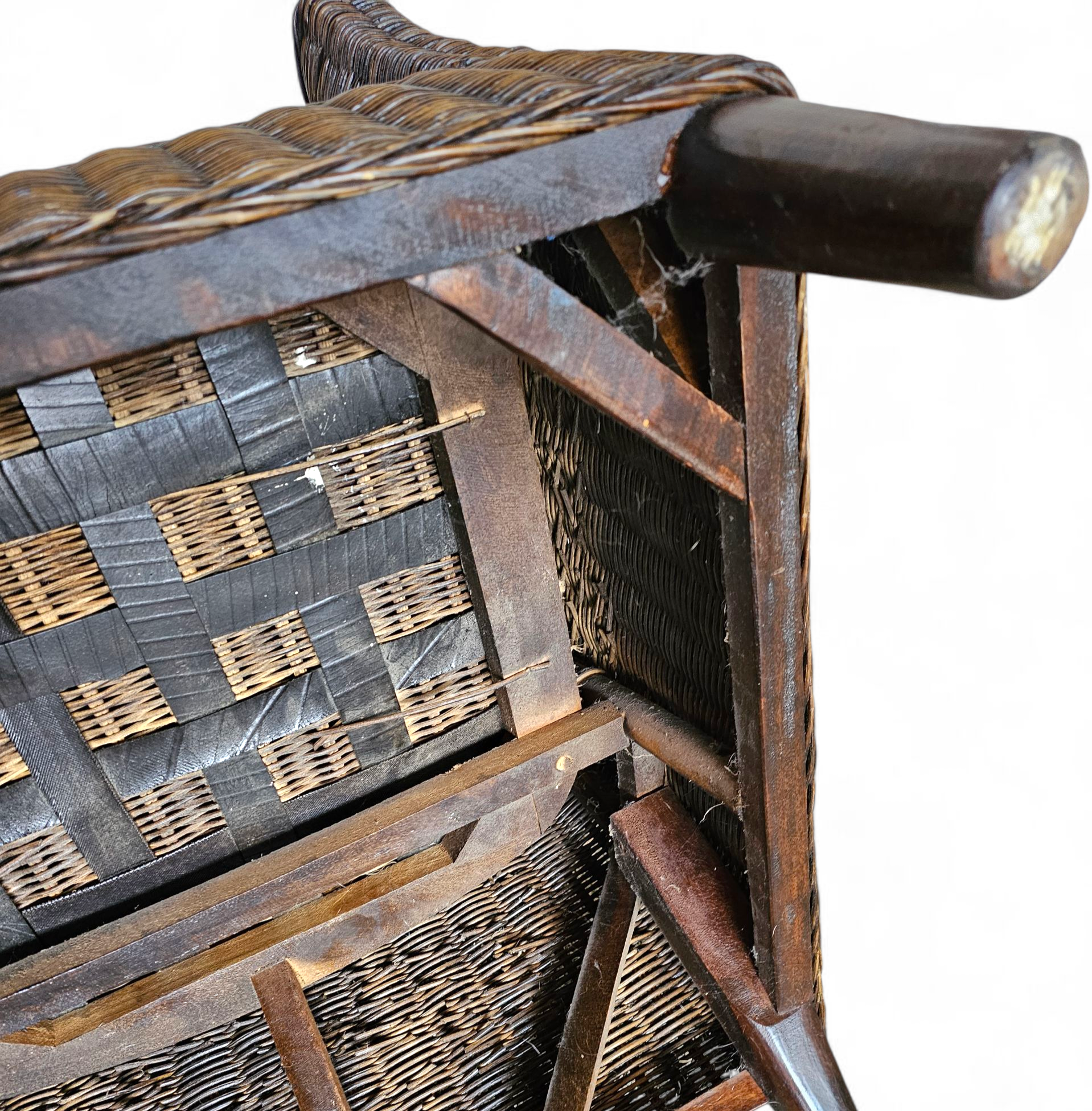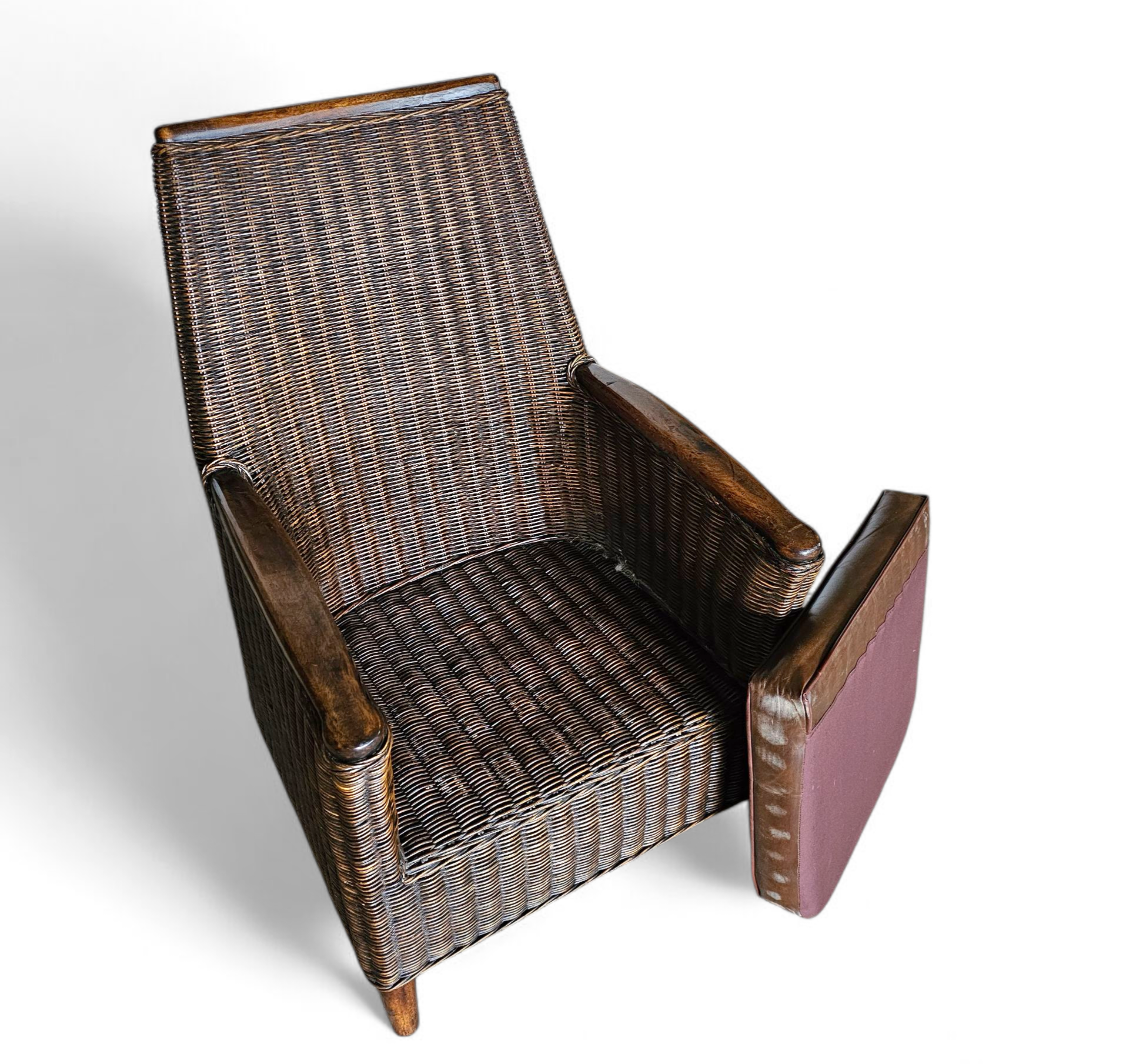 Rattan arm chair 1960S / wooden armrests / leather seat