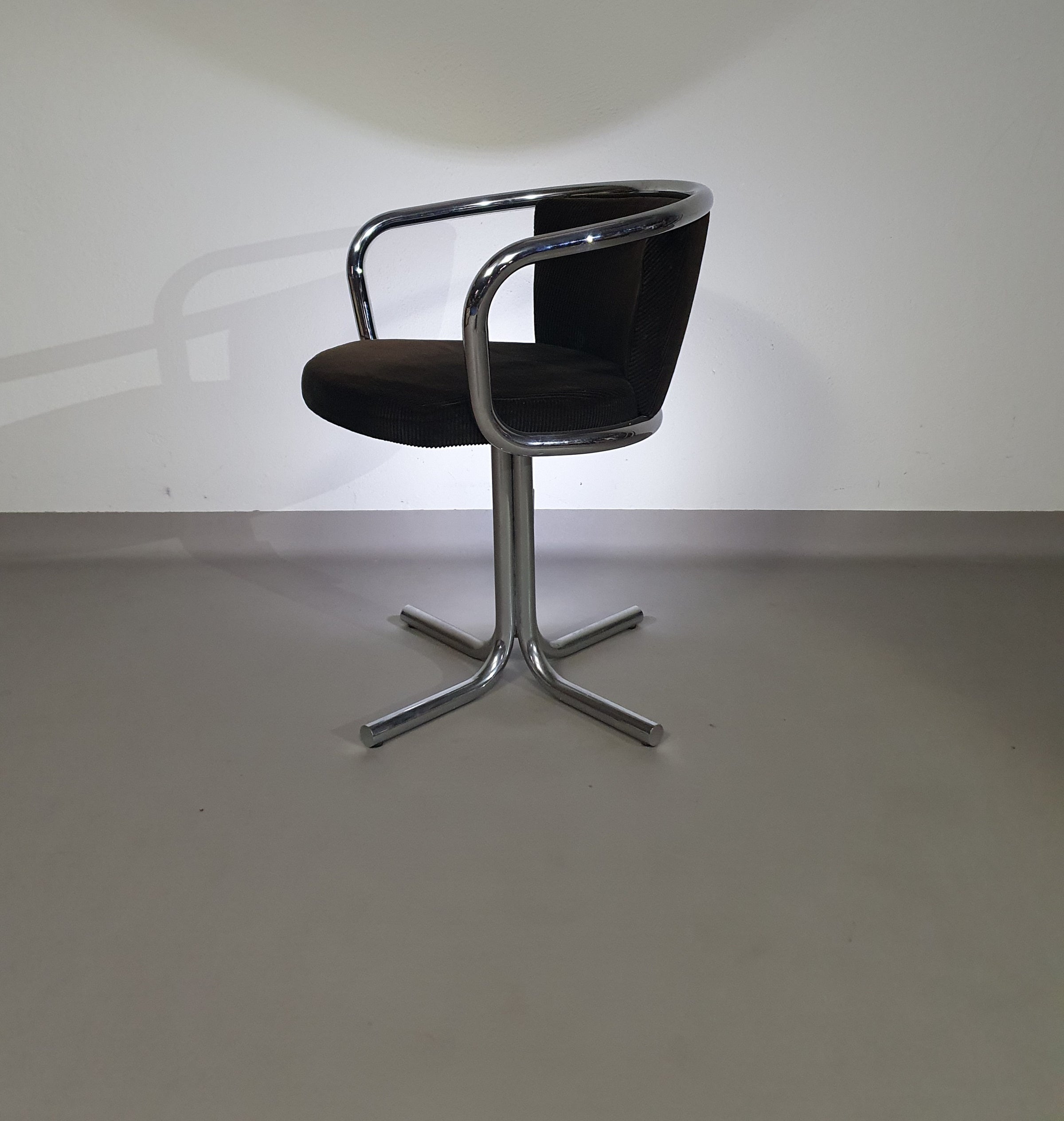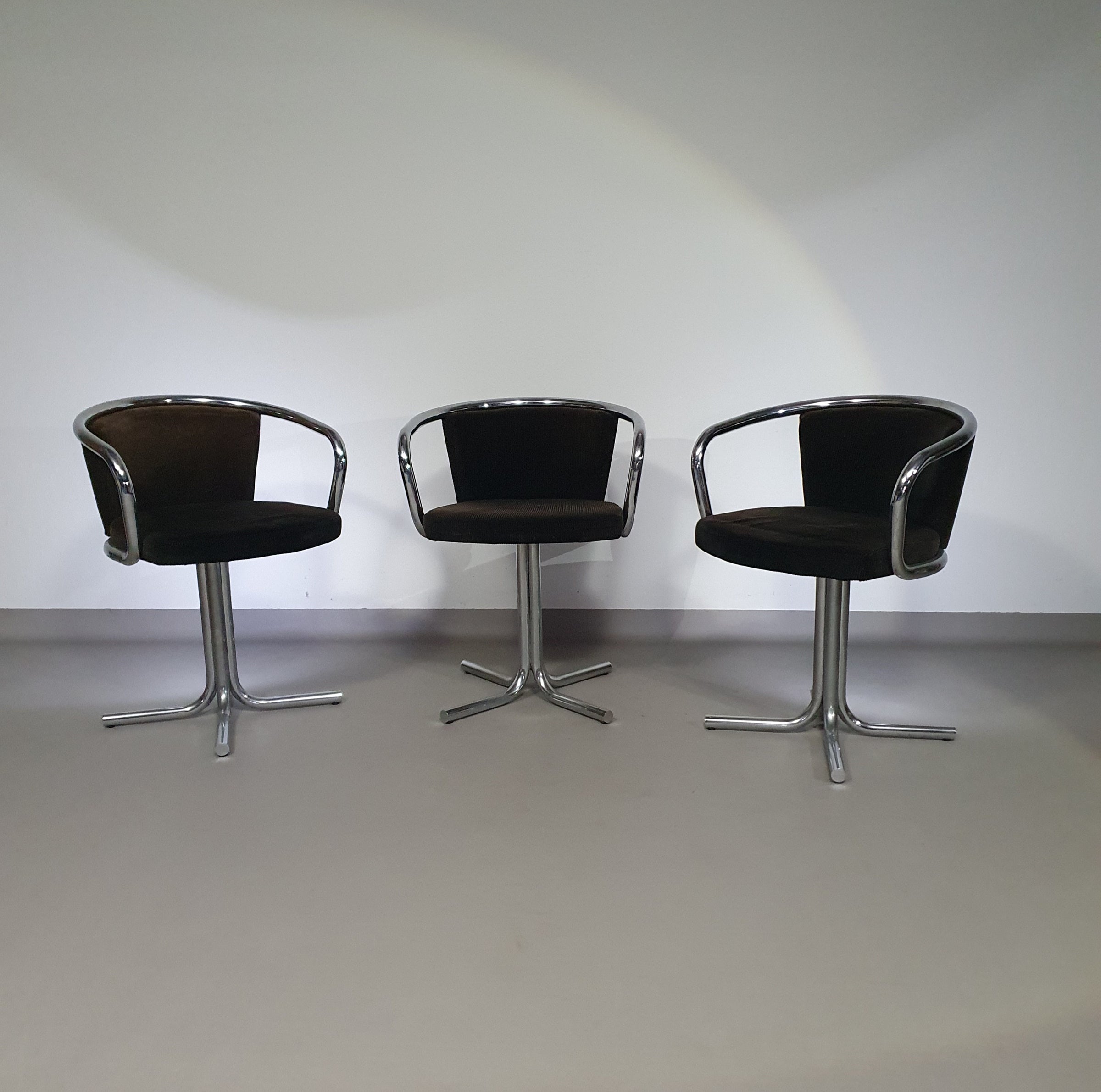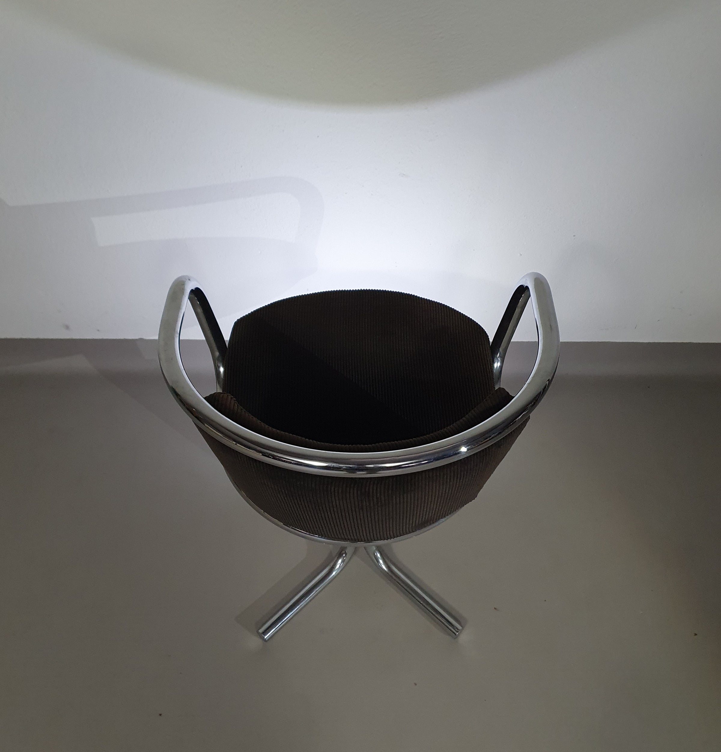 3 x mid century tube frame chairs ( turnable ) Brown Corduroy upholstery.