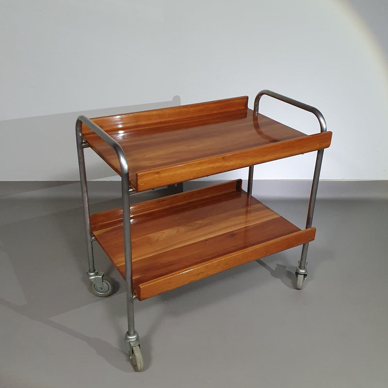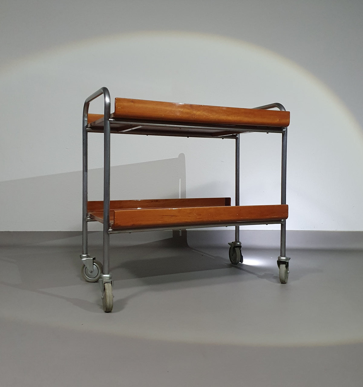 Matching set / 3-WHEEL DESIGN SERVING TROLLEYS / SIDE TABLES IN STEEL & BEECH BY BONALDO ITALY 1990S