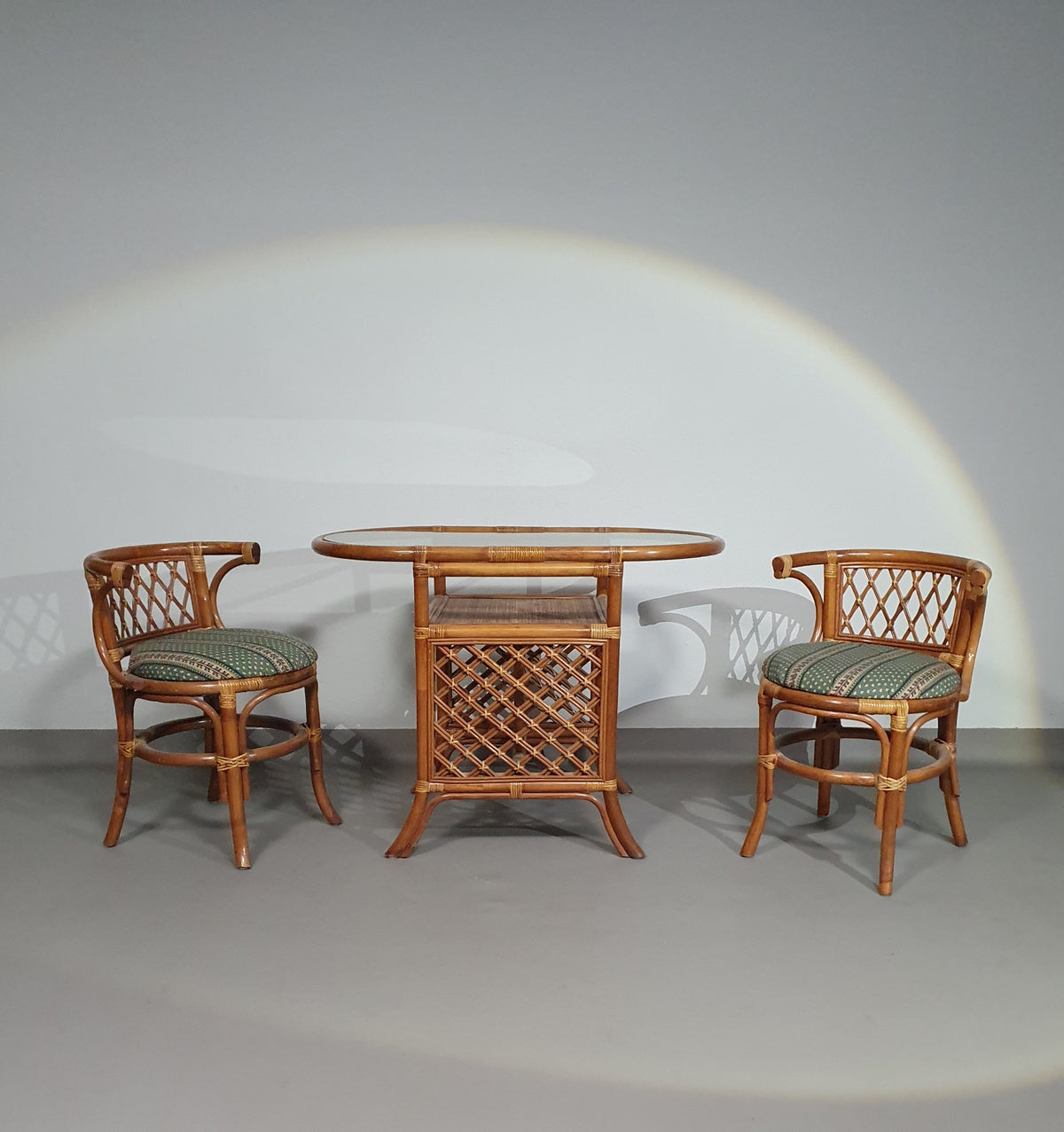 Rattan / bamboo Balcony side table / chairs set 1970s.