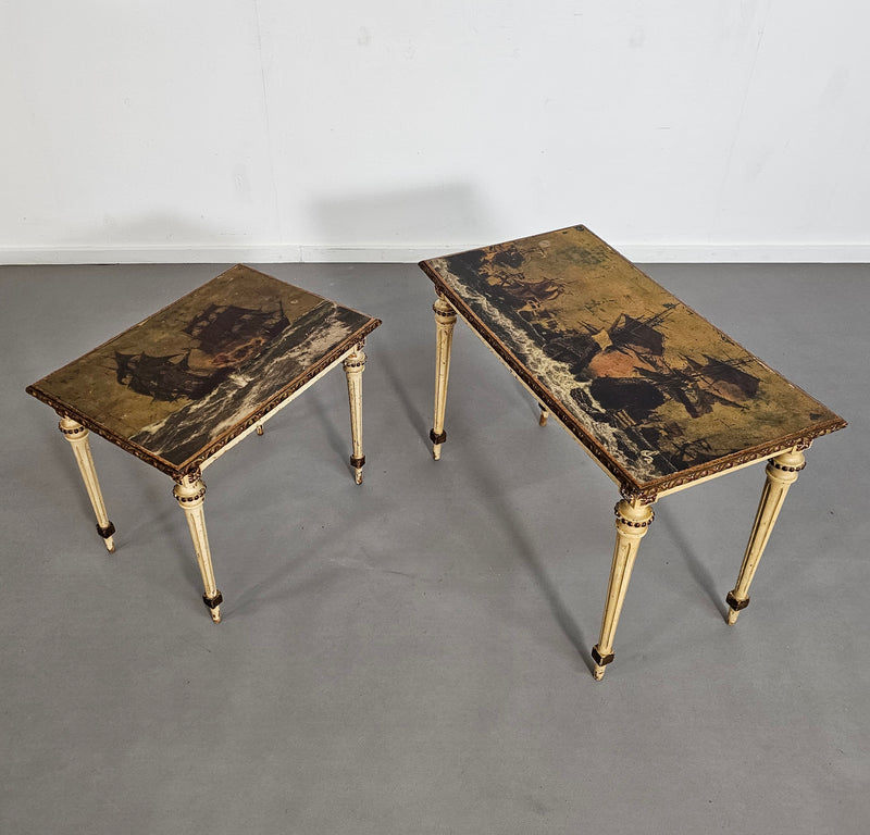 2 x nesting sidetable / neo classic / Painted gold leaf top / The battle of Texel