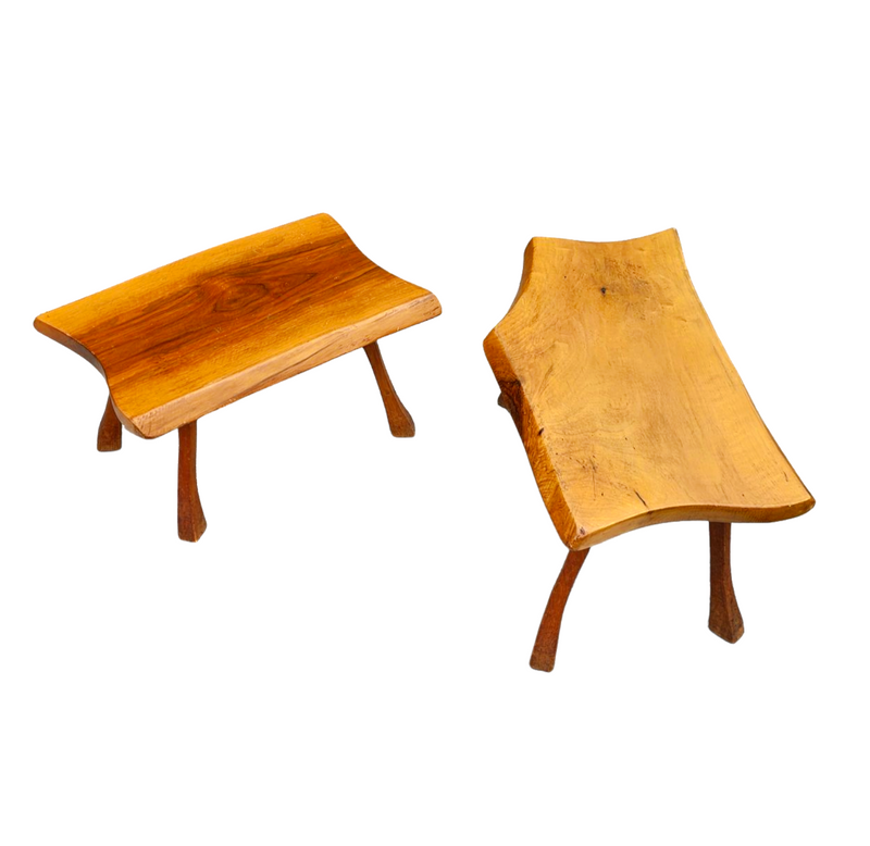 Vintage Mactan stone side tables with the original, faceted glass tops by Magnussen Ponte, 1980
