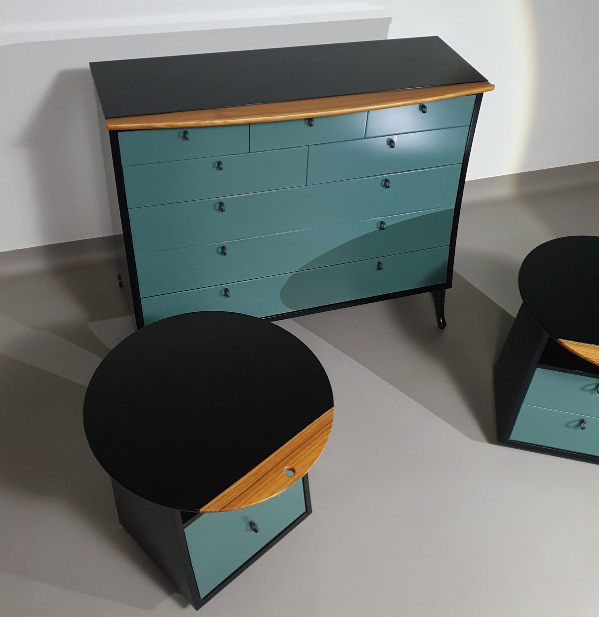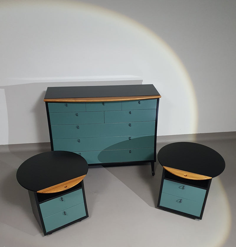 Giorgetti set 1990 by Umberto Asnago Bed sidetables / sidetables / sideboard with drawers.